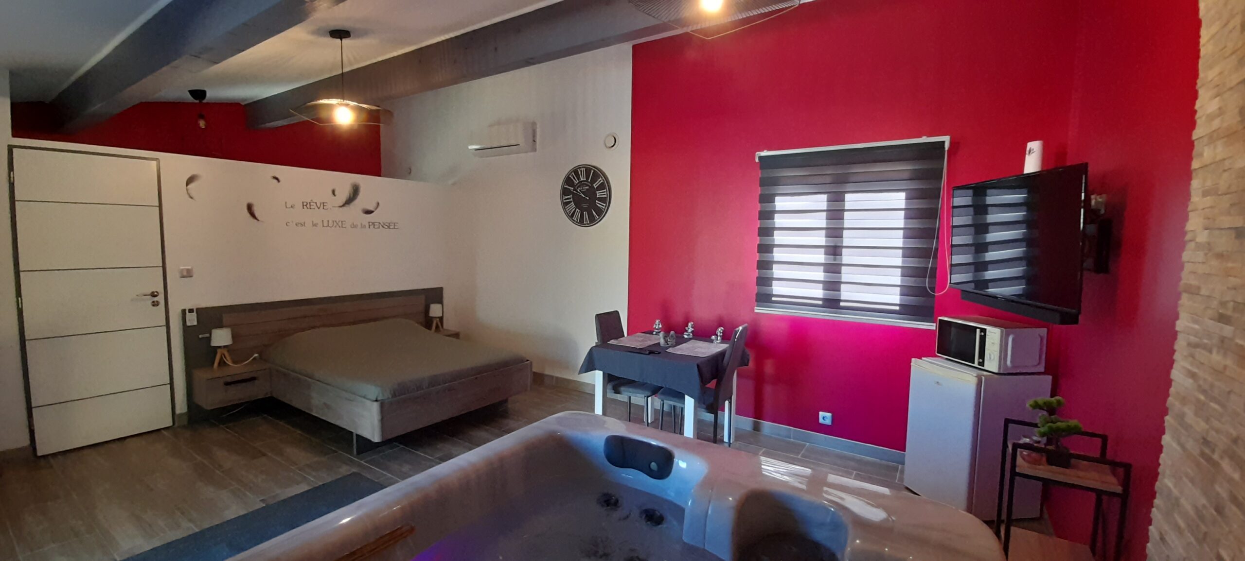 Venez passer un week-end ou un après-midi dans notre chambre de 25m2 équipée d’un SPA privatif… Détente assurée !